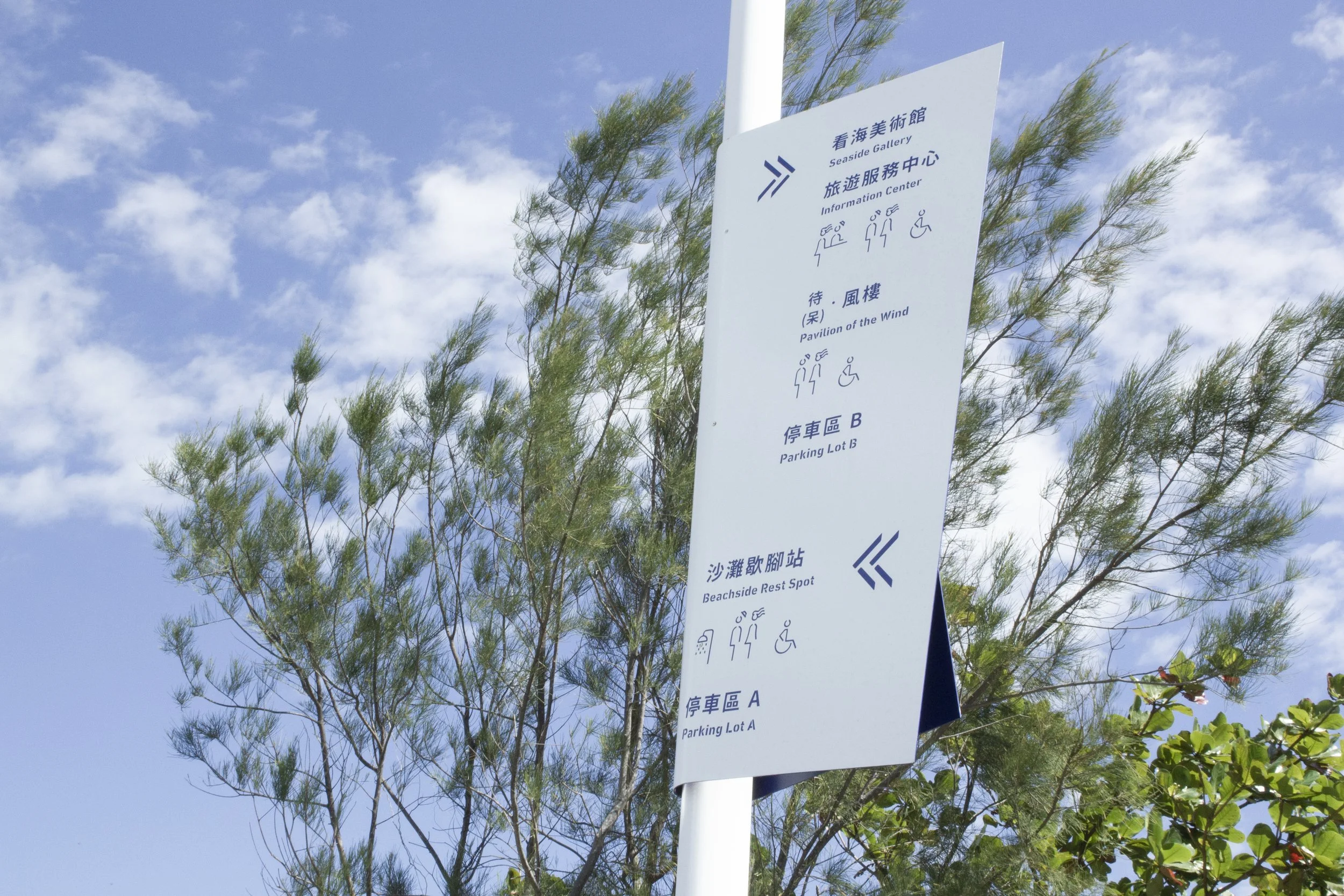In the details of several main signs, we employed fretwork to present a visualization of the wind on the panel so visitors can see the landscaping through the signage whose visual transparency adds a layered sense of movement. The image of the blowing wind is incorporated in the design of the graphics as well, allowing the wayfinding system to present a consistent personality in all aspects, from the grand scheme down to the minute details.