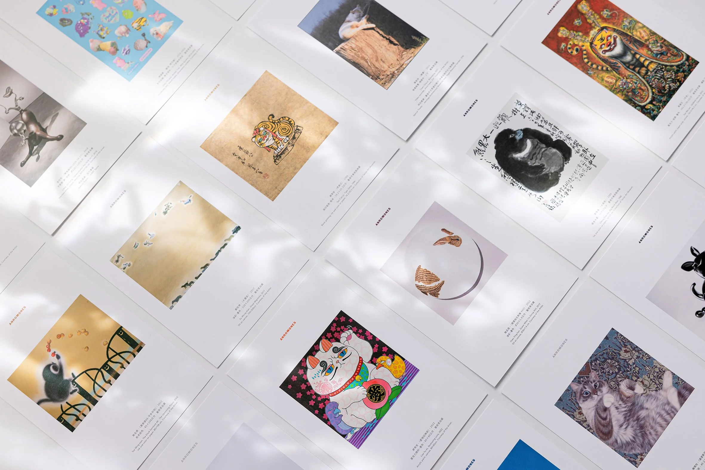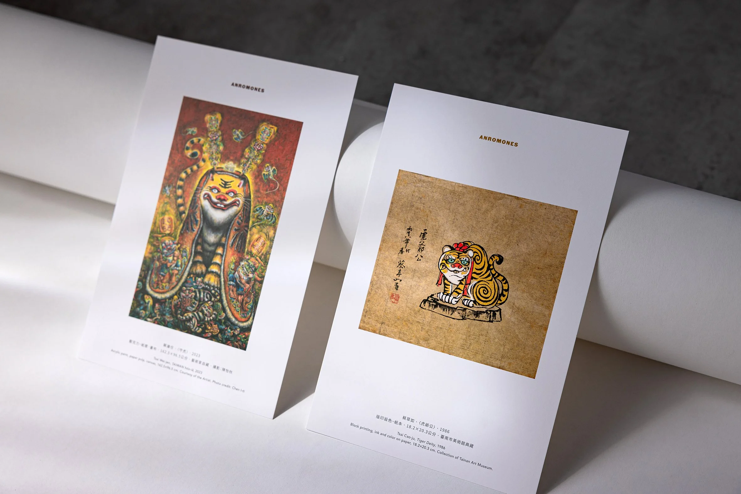 此次展覽周邊設計以白色為基調,把色彩保留給每一件作品,隨著明信片一張張取出,觀展的記憶也被一次次喚醒,直至最後會發現包藏於封套底層的展覽主視覺,翱翔於展場的飛鳥與溫柔陪伴的狗勾都被好好珍藏在這裡。