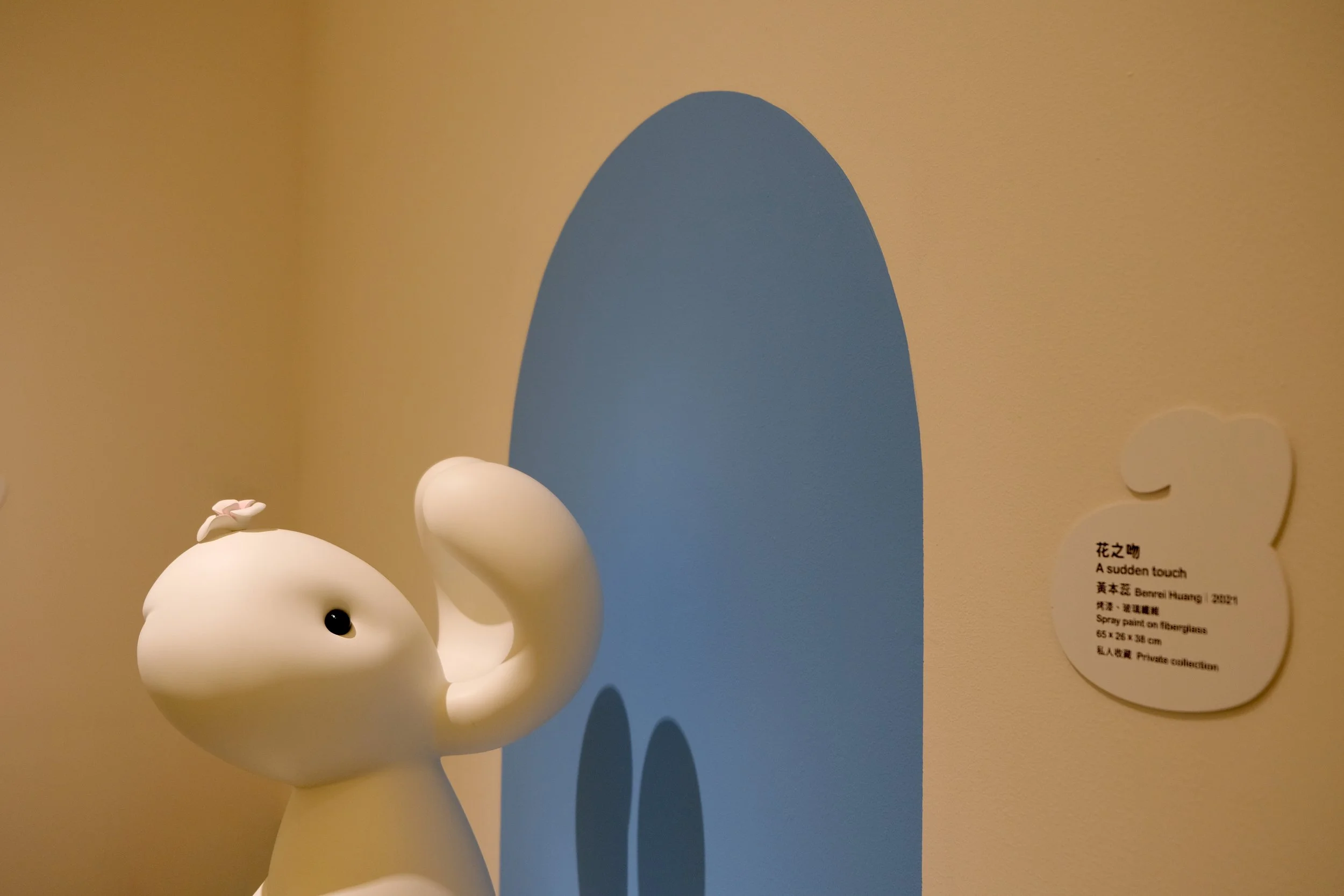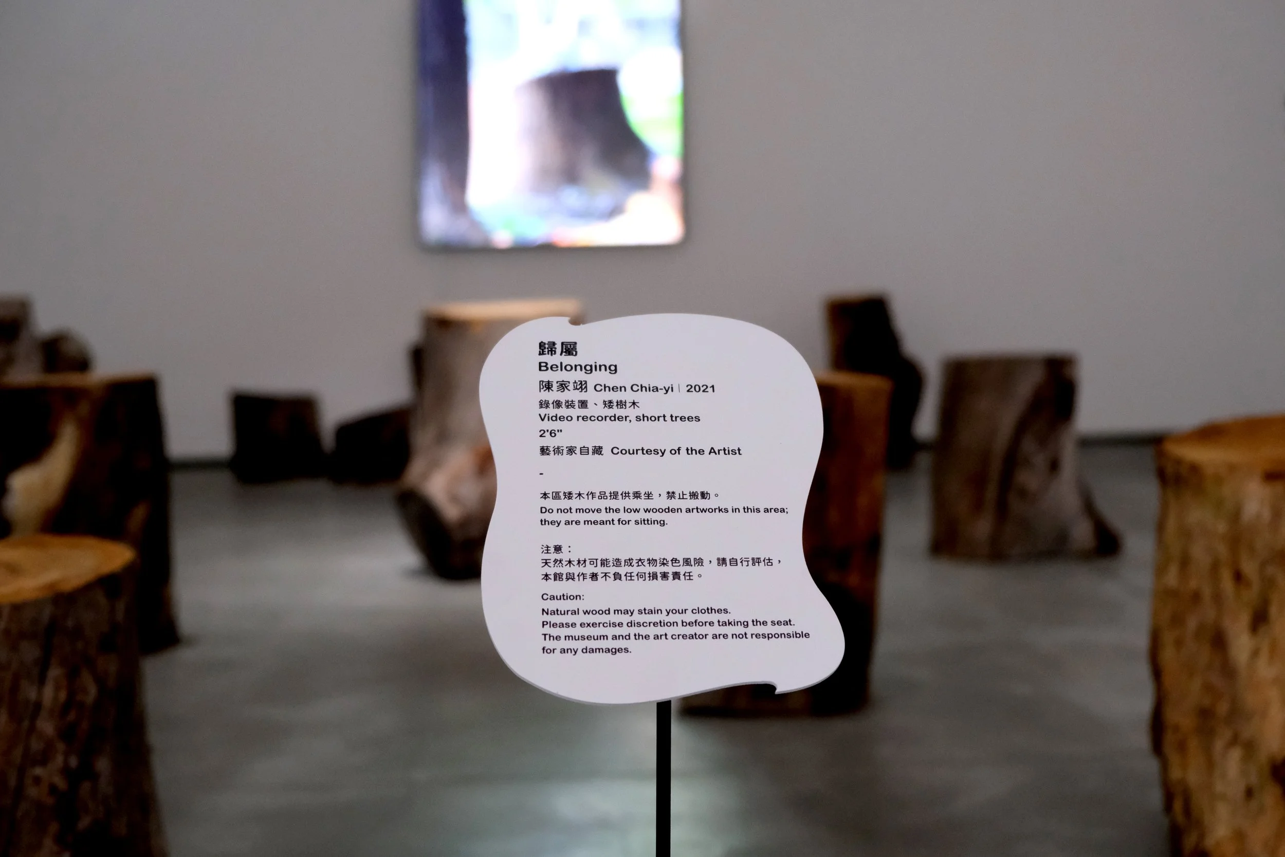 將足跡延伸,飛鳥翱翔於展場,尾巴幻化為作品說明,禁止越過的界線上也踏滿了動物的足跡。